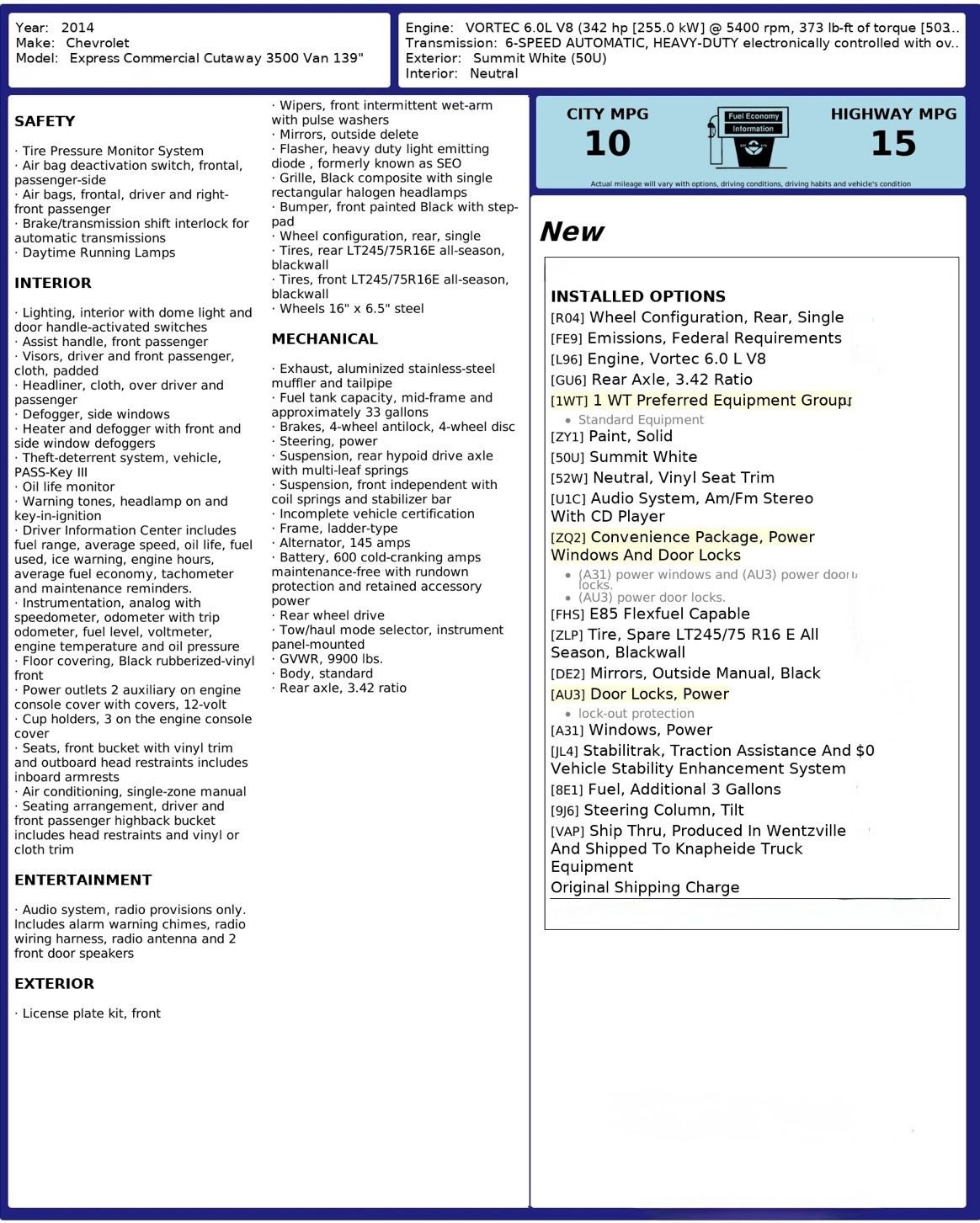 2014 CHEVROLET EXPRESS 3500 11FT KUV SERVICE VEHICLE