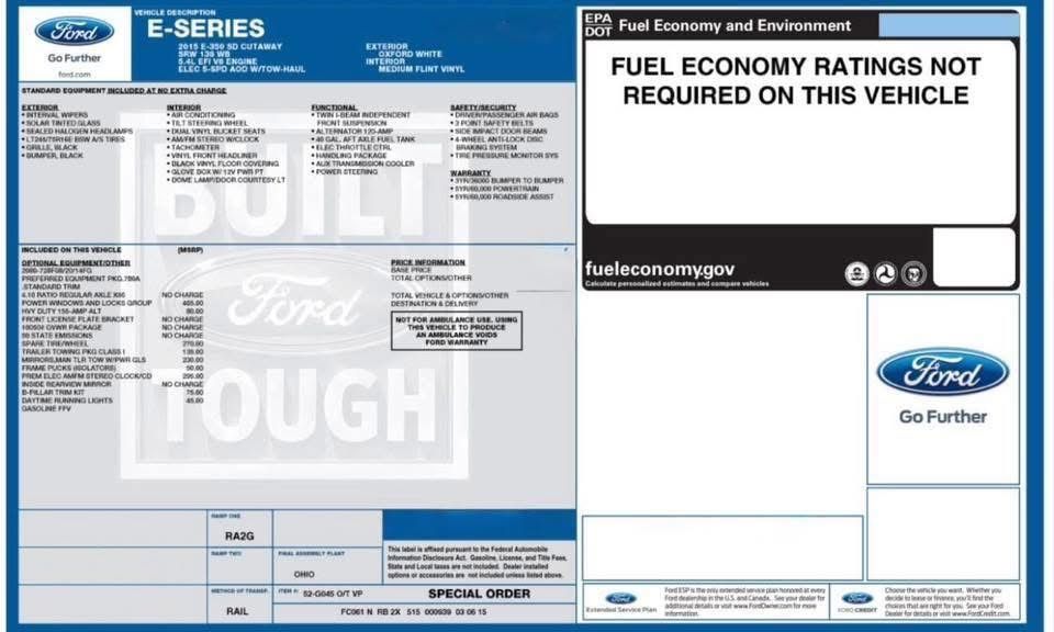 2015 FORD E-350 CUTAWAY E-350SD 138" SRW SUPREME KUV ENCL UTILITY VEHICLE